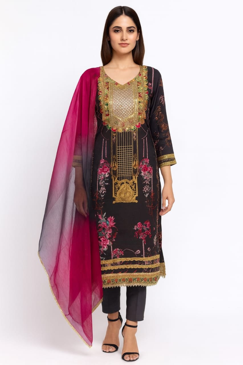 Graceful Festive Attire with Organza Dupatta – Charcoal